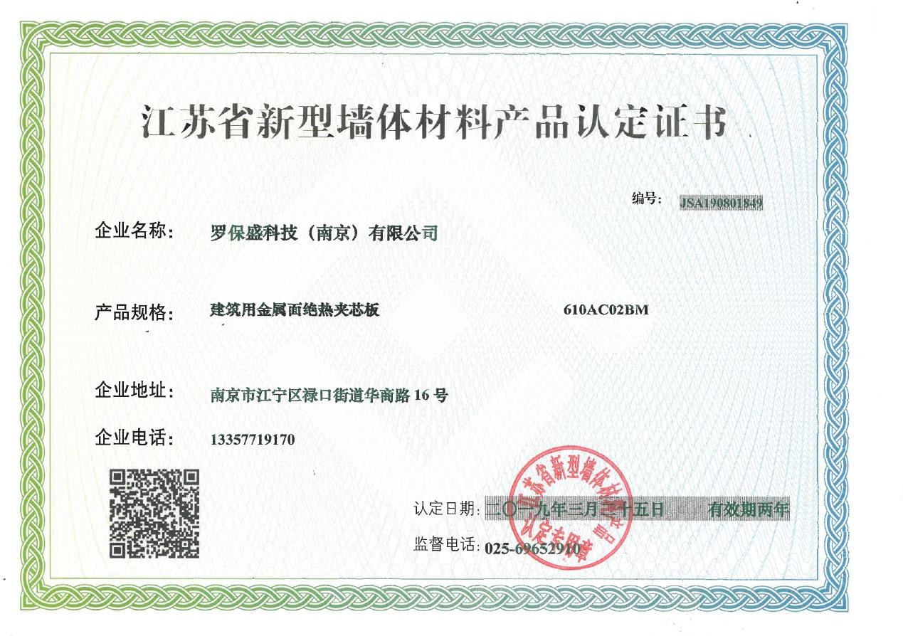 江苏省新型墙体证书